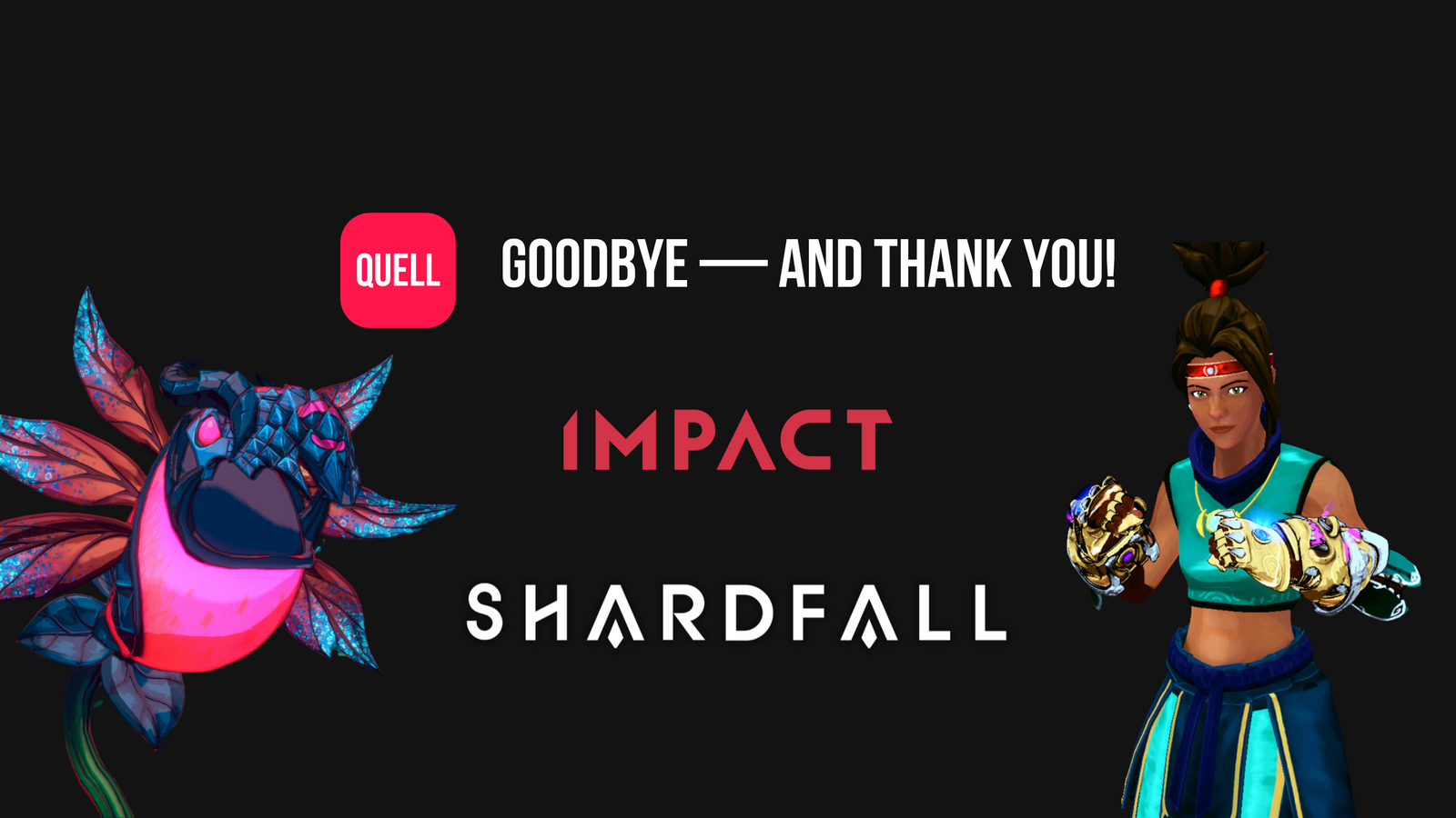 As development on Shardfall comes to an end, we bid you all a fond farewell. It has been an incredible privilege to work with the exceptional Quell community we’ve built over the last five years, and we take great pride in the experience we created together with Shardfall and the Impact.