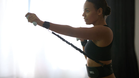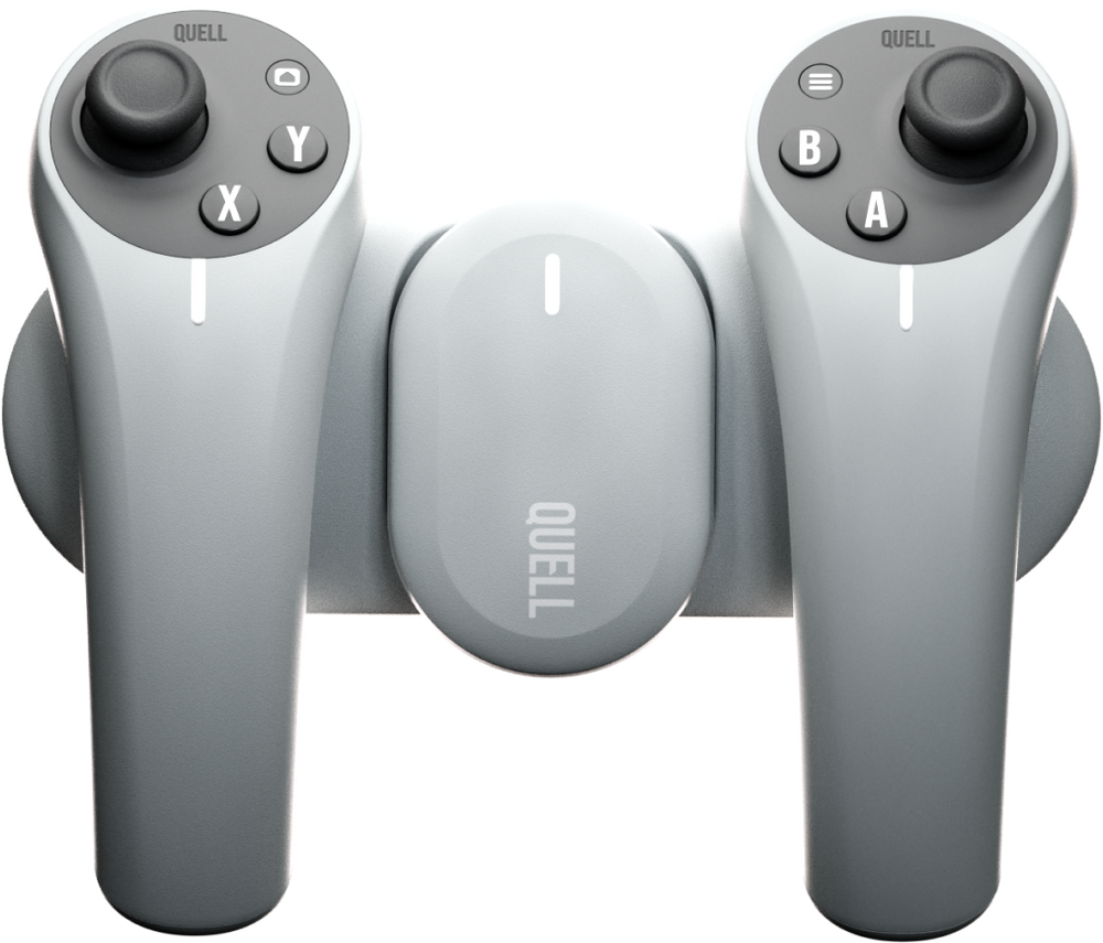- Quell Impact: belt, resistance bands, wrist straps, Impact controllers, Impact chest pod, charging dock, and USB connection dongle