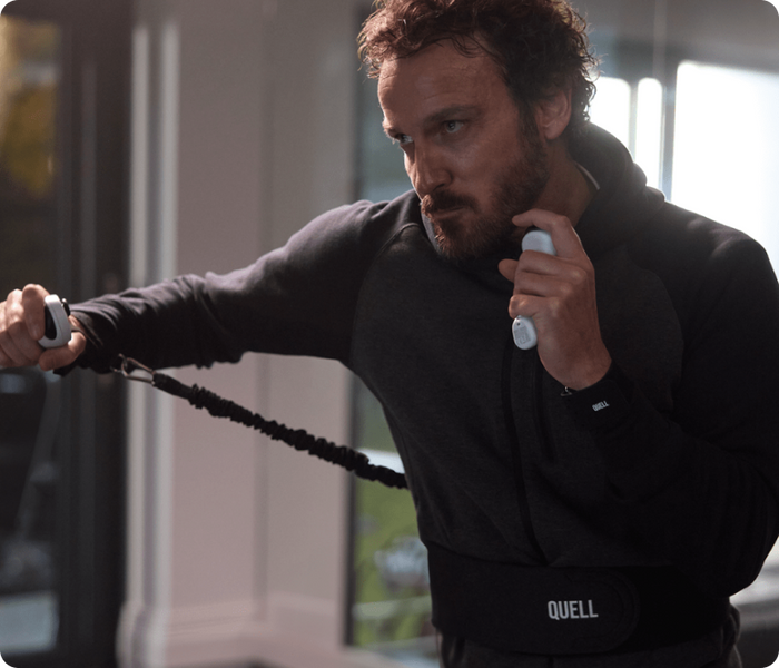 - Quell Impact: belt, resistance bands, wrist straps, Impact controllers, Impact chest pod, charging dock, and USB connection dongle